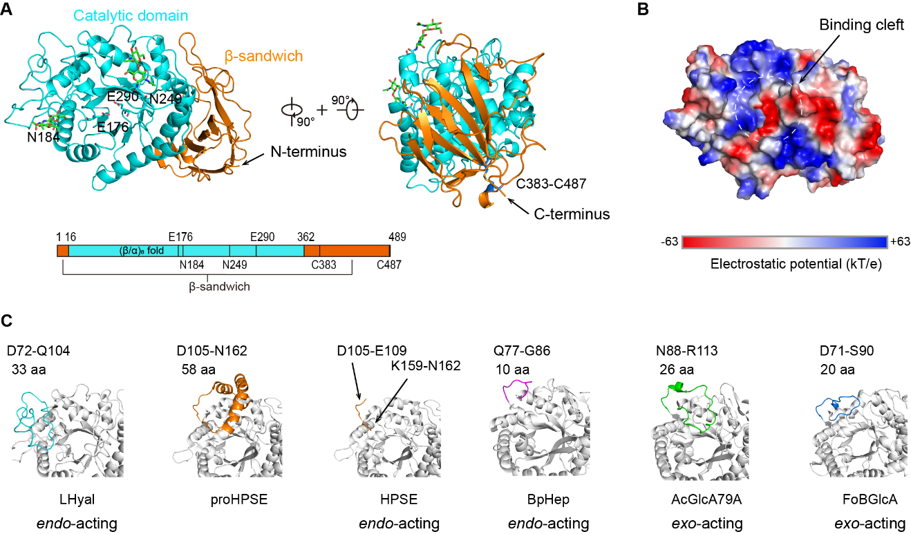 作为透明质酸分解代谢的关键参与者,透明质酸酶参与多种生理和病理过程,被广泛应用于医药领域。根据催化机制及水解产物的不同,透明质酸酶主要分为三类,其中分别水解及裂解β-1,4糖苷键的两类透明质酸酶的蛋白结构及催化机制已经被广泛研究,然而对于水解β-1,3糖苷键的第三类透明质酸酶的信息则知之甚少。