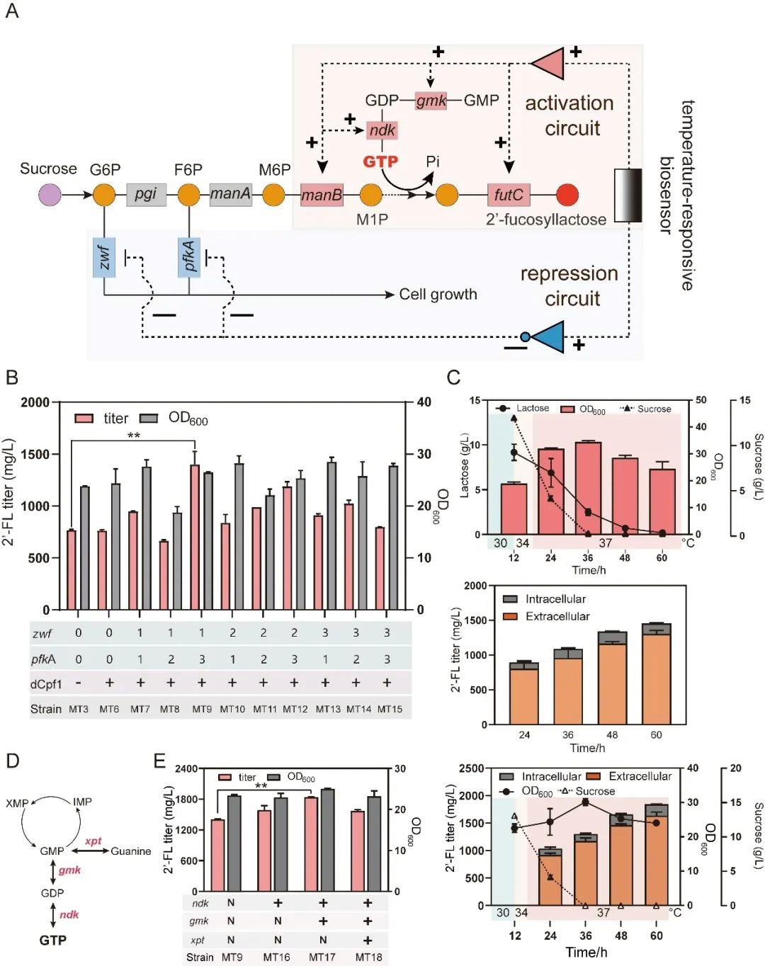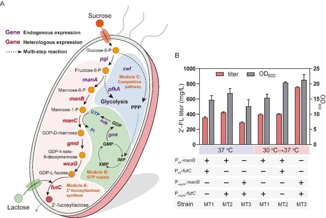 图5基于时序调控系统的2’-岩藻糖基乳糖的代谢调控