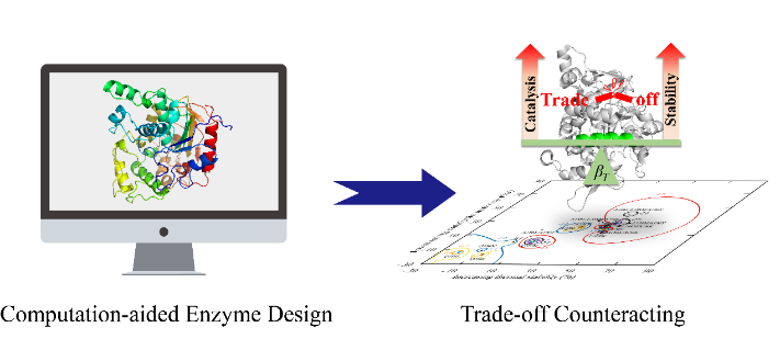 天然酶的低稳定性和低活性限制其在工业上的广泛应用。在酶改造的过程中,酶的稳定性与活性之间往往存在负相关关系,即高活性往往伴随着低活性,反之亦然。这种局限性被称为稳定性与活性之间的权衡。开发抵消酶的稳定性-活性改造策略,解析抵消机制具有重要意义。