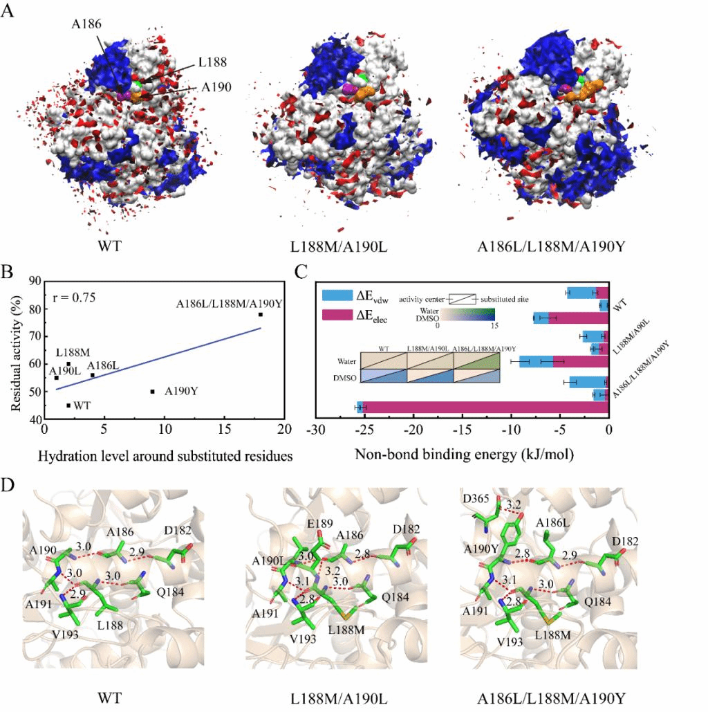 Figure 3.Solvation behaviors and non-covalent interactions of wild-type and mutants in 75% (V/V) DMSO.