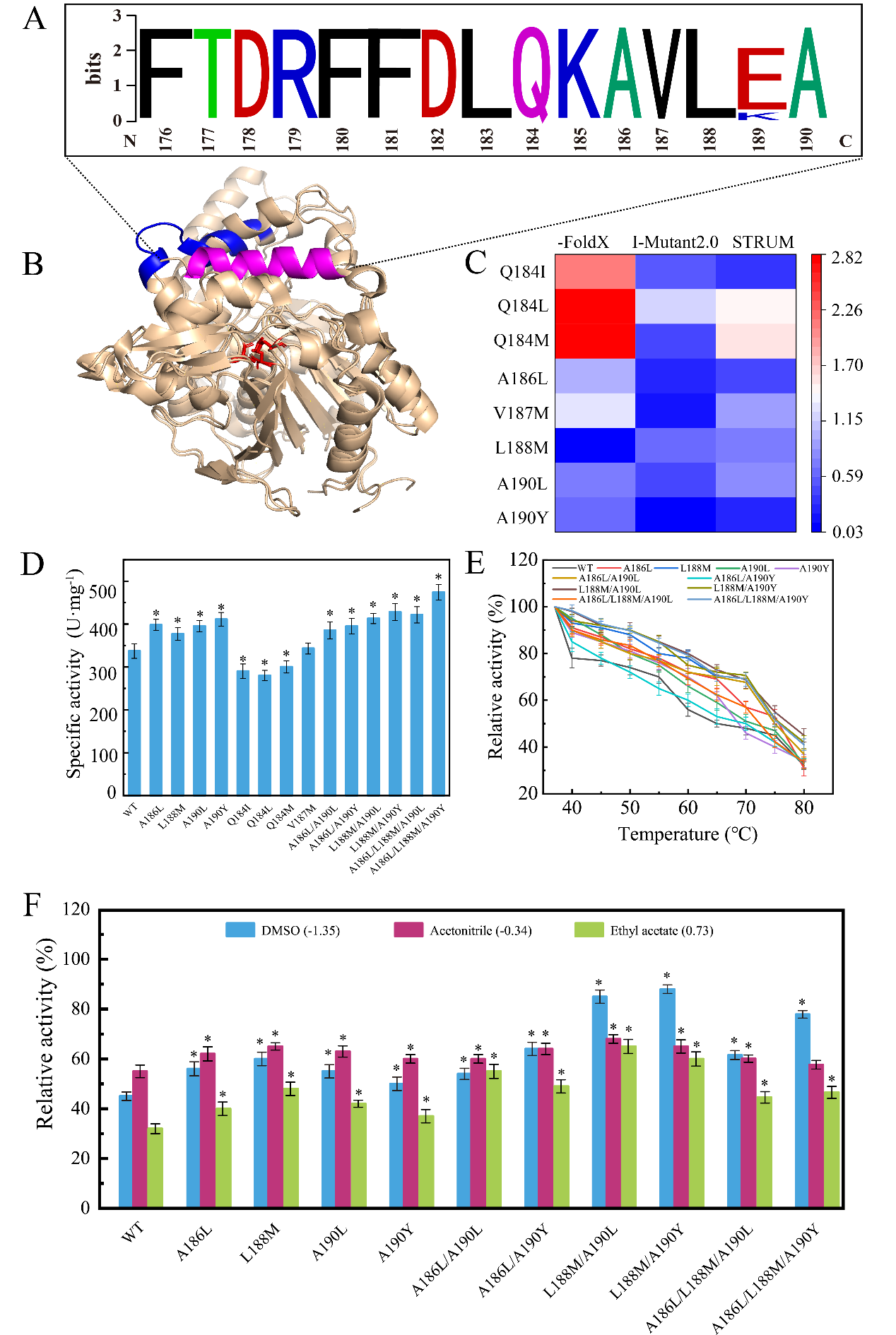 Figure 2. Mutants screening and enzymatic properties of mutants.
