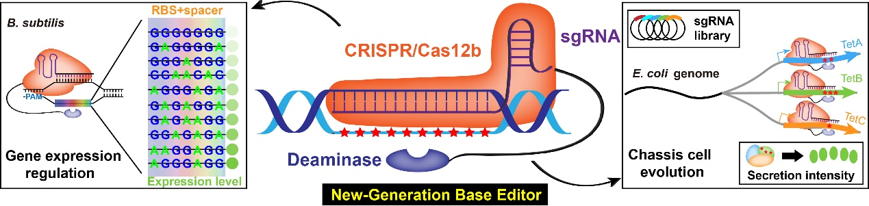 周哲敏教授团队的研究成果“A New-Generation Base Editor with An Expanded Editing Window for Microbial Cell Evolution In Vivo Based on CRISPR‒Cas12b Engineering”(Hao et al., Adv. Sci., 2024, DOI: 10.1002/advs.202309767)。2019级博士生郝文亮(已毕业,现为清华大学化学工程系2023级博士后)为论文的第一作者,周哲敏教授和韩来闯助理研究员为论文的共同通讯作者。