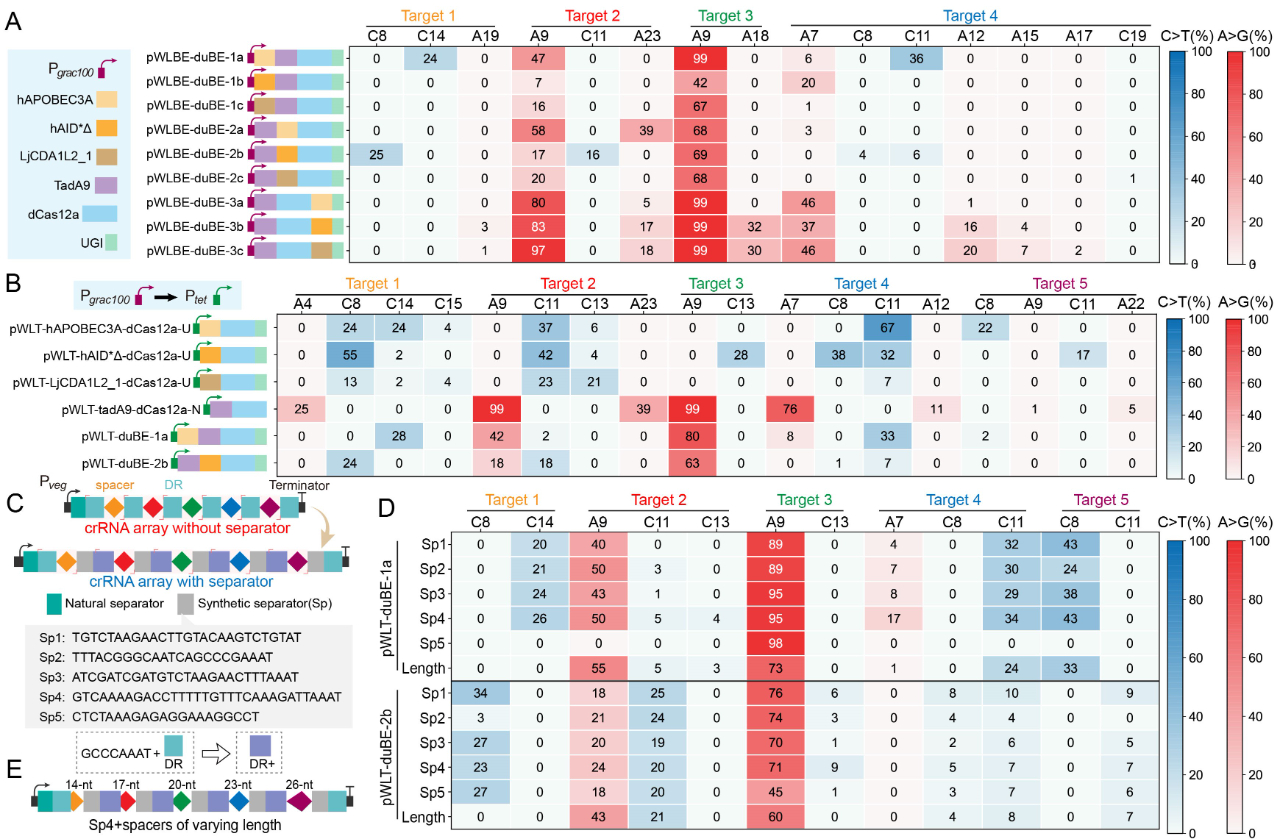 图1 基于dCas12a的双功能多靶点碱基编辑器MultiduBE的设计、创制及应用