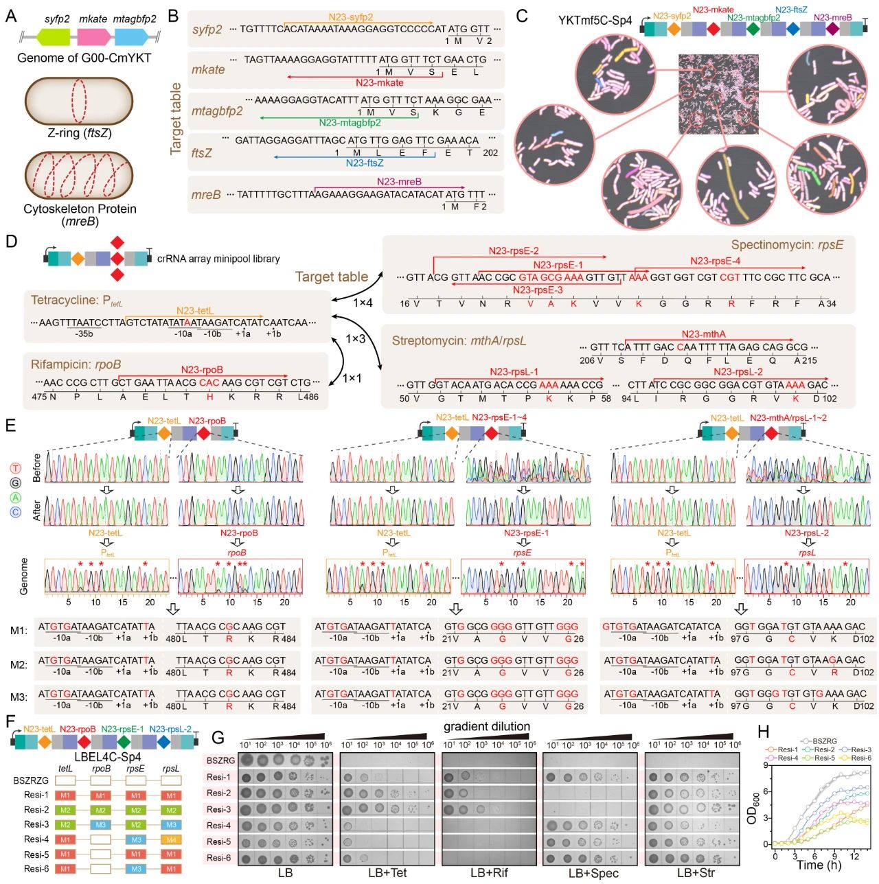 被成功应用于细胞生理重编程和代谢调控,获得了具有四种抗生素抗性的枯草芽孢杆菌突变菌株(包含一种从未报道的新型链霉素抗性突变,图