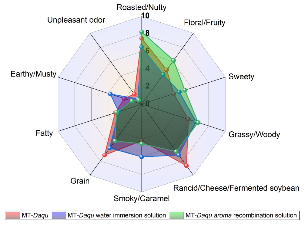 曲香是评价大曲质量的重要指标。长期以来,大曲曲香的评价主要依靠技术人员的感官描述,但由于其主观性强、可重复性差,评价结果易受个人经验和生产环境的影响,影响大曲产品质量判断,难以满足现代酿酒工业对标准化和精确控制的需求。因此,解析曲香的物质基础并开发一套科学、客观的曲香风味评价体系,对于提升大曲产品质量和保障酿酒生产的批次稳定性具有重要意义。