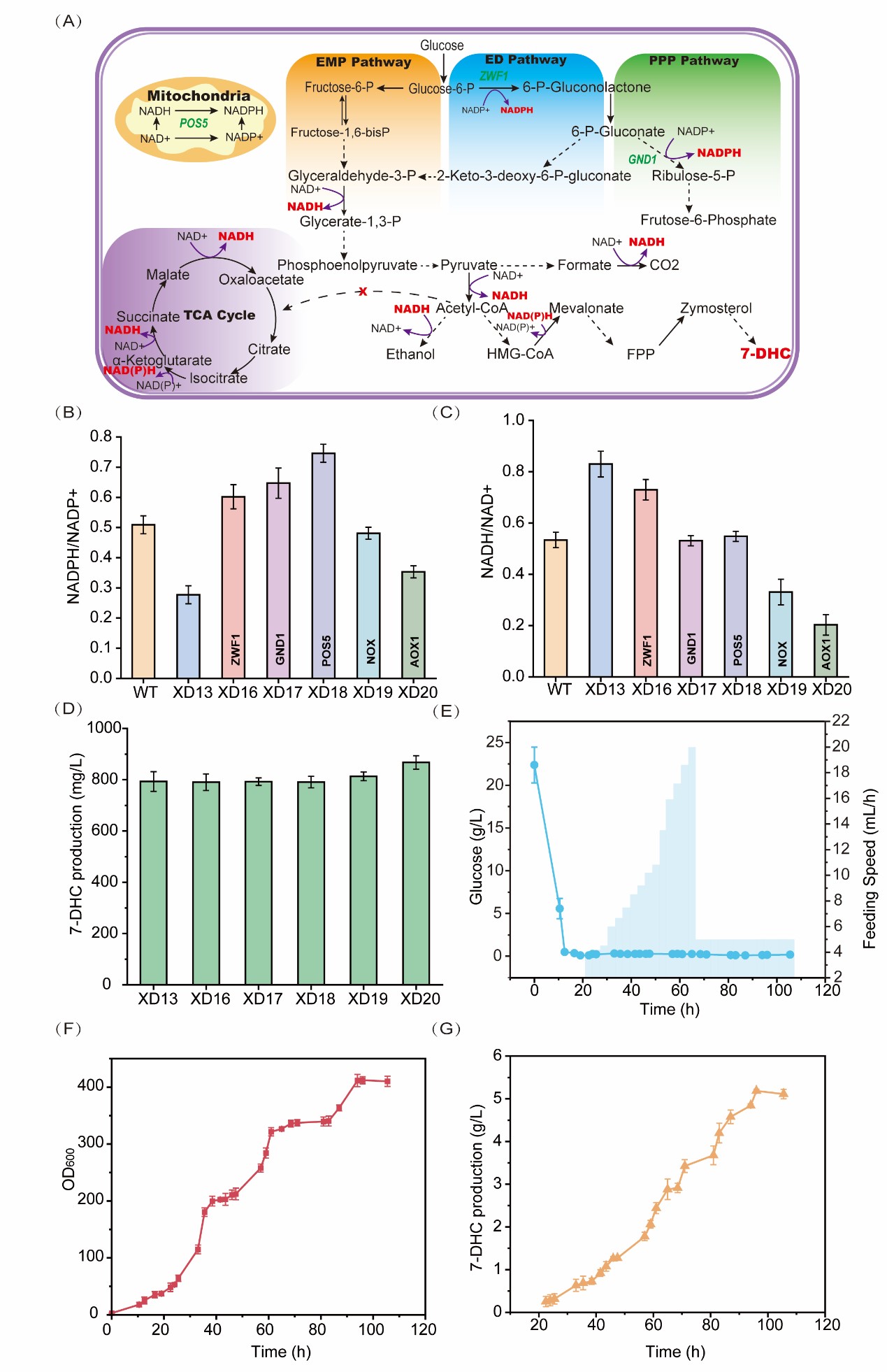 图5 辅因子优化及高密度发酵生产7-DHC