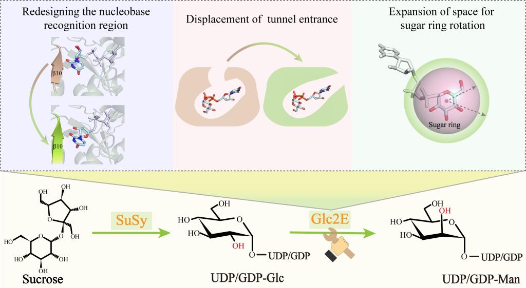 丁重阳教授课题组在催化合成甘露糖糖供体的新酶创制及其高效级联应用方面取得重要进展,研究成果“Artificially created UDP-glucose 2-epimerase enables concise UDP/GDP-mannose production via the synthase–epimerase route” 正式发表于ACS Catalysis (IF = 11.3)(//doi.org/10.1021/acscatal.4c06698)。