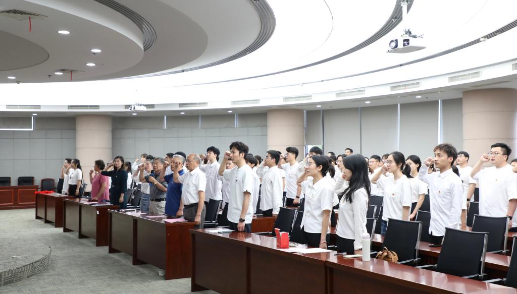 入党宣誓强党性。6月30日下午,学院党委举行2023年新党员入党宣誓仪式。全体与会人员通过视频形式回顾了“百名学生走访百名老党员”的活动历程。学院党委副书记、副院长林丹宣读新发展预备党员名单。学院关工委陶文沂、诸葛健、吴骥一、帅桂兰为新党员代表佩戴党员徽章。由诸葛健领誓,预备党员举起右拳,慷慨激昂,在党旗下光荣宣誓。生物2001班刘天宇代表全体新党员发言,向党组织承诺立志做有理想、敢担当、能吃苦、肯奋斗的新时代好青年。此次仪式进一步增强了青年党员的责任感与使命感,激励其投身全面建设社会主义现代化国家火热实践。