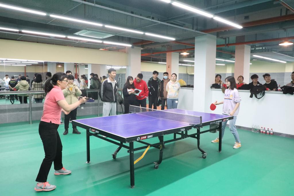 本次比赛前期以单淘汰制方式进行了学生个人初选赛,经过激烈的比拼争夺,最终选出15名学生作为学生队伍与教师队10位教师进行师生对抗赛。师生对抗赛的整个过程不论是教师还是同学,都认真专注、积极拼搏,弘扬“团结合作,勇于创新,拼搏进取”的国球精神,在球场上尽情切磋球技,气氛激烈、严肃又不失愉悦。最终经过精彩绝伦的角逐,教师组和学生组分别取得胜利6场和胜利9场的成绩,为本次师生乒乓球赛划上圆满句号。