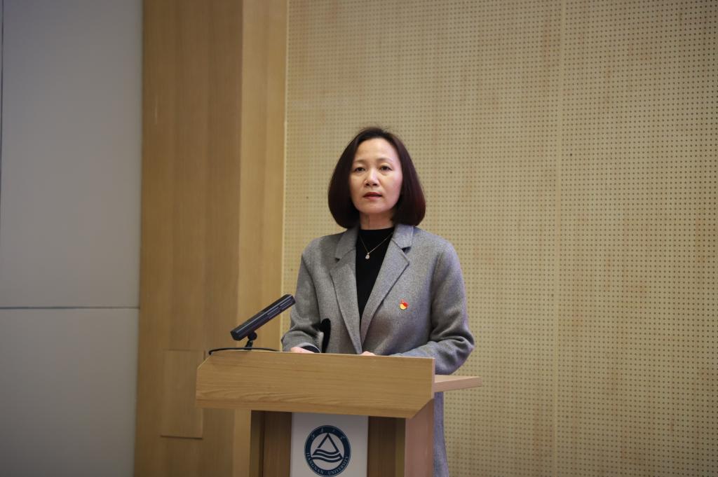 程捷音代表学院党委作主题为《不忘初心,勇毅前行,在矢志奋进中谱写青春之歌》的讲话。她指出,团委紧跟时代步伐,坚持以习近平新时代中国特色社会主义思想为指导,以一流学科发展方向为指引,发扬“善于实践,勇于创新”的发酵精神,勤奋求实、锐意进取,在基层团建、思想引领、校园文化、社会实践、志愿服务等各方面取得了优异成绩。最后也对全院青年提出三点希望:第一,坚定“不忘初心跟党走”的信念,勇做民族复兴的先锋队;第二,树立“打铁还需自身硬”的自觉,争做改革创新的生力军;第三,培养“自古英雄出少年”的气魄,敢做创造未来的弄潮儿。