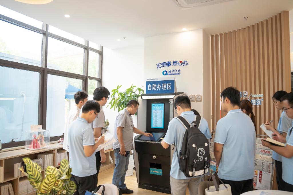“一刻钟便民生活圈”的建设,有助于疏通基层治理的毛细血管,其高质量发展的关键在于便民、利民、惠民。实践团成员先后前往和畅睦邻中心、春城农贸市场、荣巷卫生服务中心、河埒社区乐业之家进行全方位的实地调研,探究社区结合地域情况、商业布局、居民特征等优势资源,打造家门口“幸福圈”的有效路径。在和畅睦邻中心和春城农贸市场,同学们体验了从“油盐酱醋茶”到“衣食住行玩”的一站式商业建设和一体化服务供给。在荣巷街道社区卫生服务中心,实践团调研学习医保政策知识,了解目前一站式医疗服务给社区居民带来的便利,居民“急、难、愁、盼”得到切实解决。“就业是最大的民生”,无锡市通过盘活核酸小屋资源,推进“乐业之家”建设,提升求职者就业能力,帮助重点群体充分就业。