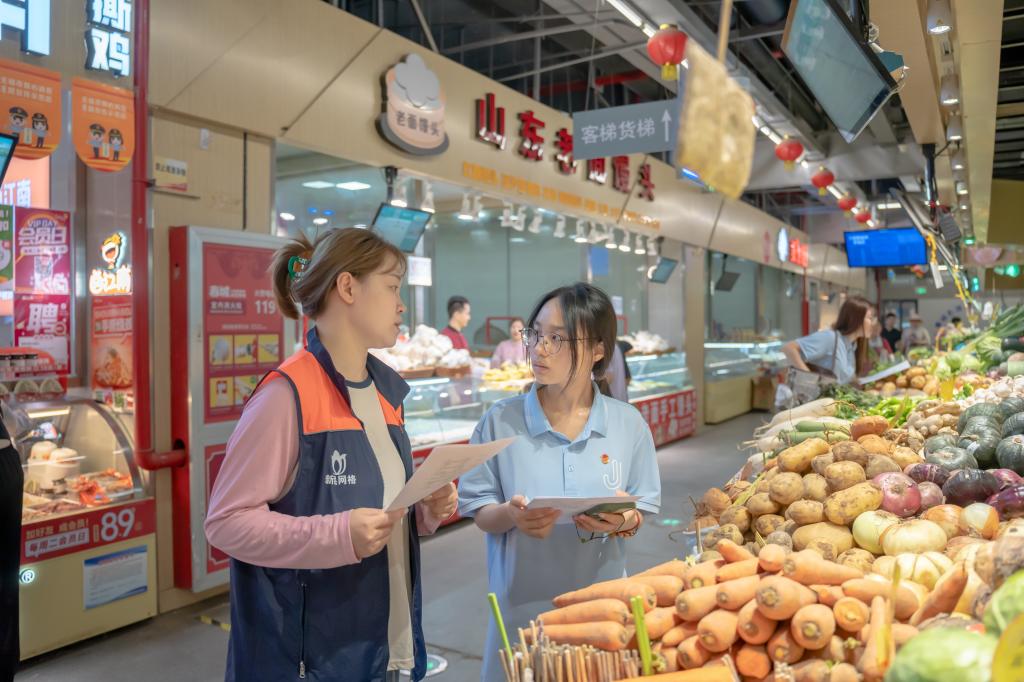“以前的菜市场环境脏、乱、差,现在不一样了,现在实行统一规划,环境非常整洁,也非常热闹,充满了烟火气。”实践团成员在春城农贸市场倾听商户们的真实感受。
