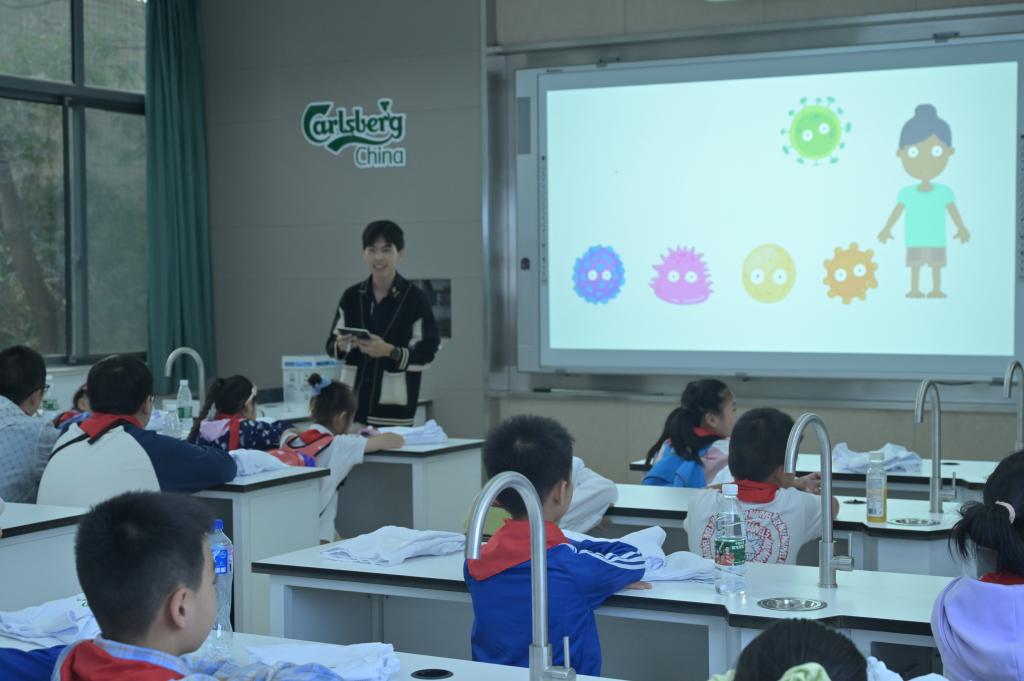 随后,全国高校首批百个研究生样板党支部食品合成生物学与生物制造团队党支部、全国党建工作样板党支部酿造微生物学与应用酶学研究室党支部的党员们开讲“科普小课堂”,围绕“微生物的世界”“走进科学的色彩”等主题,以病毒为切入点,结合日常生活中的现象,用通俗易懂的语言向小朋友们介绍了什么是微生物、生活中的微生物等知识。课堂上,小朋友们聚精会神、认真思考、积极互动,现场气氛十分活跃。
