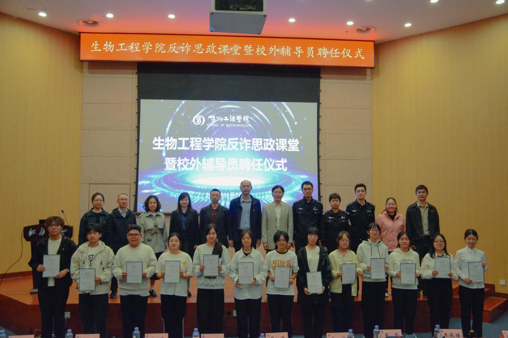 保卫处副处长吴江为校外辅导员颁发聘书。为实现学生反诈宣传工作的三个全覆盖,学院组建了一支超过200人学生反诈志愿队伍。雪浪派出所副所长毛宁与无锡电信网络操作维护中心党支部书记洪伟一同为学生反诈志愿者代表颁发志愿者聘书。现场,60余名本硕博志愿者代表一同宣读反诈志愿誓词,牢记反诈工作责任与使命。
