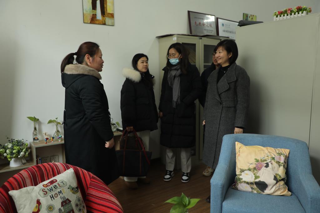 会后,蒋洁一行还参观了学院“心语空间”心理健康工作站。