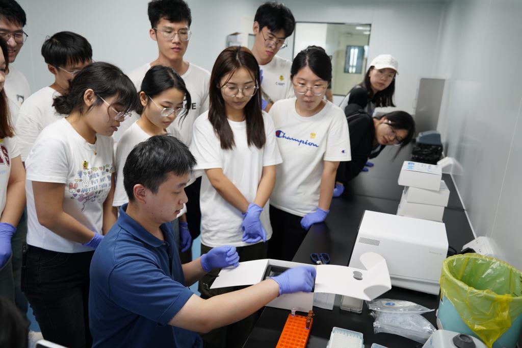 9月12日下午,在墨卓生物资深科学家徐云飞的带领下,张同舟等详细了解墨卓生物的发展历程、核心理念、企业目标及核心技术生物产品,并参观了墨卓生物的实验平台、试剂制造平台和仪器组装平台,深入了解一体化产品的制造过程。墨卓生物产品经理李婷婷以“MobiNova®跨平台、多物种单细胞多组学解决方案”为主题进行了专题报告,向同学们介绍了多组学高通量单细胞一站式解决方案。9月13日上午,学生代表们参加了理论测验,公司学术支持经理陈国栋为学生们详细介绍了Mobicube实验流程和原理。当天下午,学生们进行了第二轮实操测验,使用墨卓生物研发的MobiNova®-100进行了实验操作,获得了宝贵的实操体验。