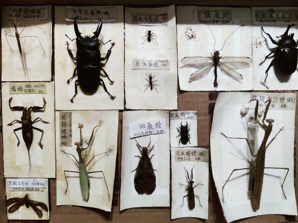 不仅如此,沈汉栋还自学了昆虫专业相关课程,并时常进行野外采集。他对昆虫的构造和分类也有了更详细的了解。因此经常帮同学鉴定常见的昆虫并科普动物知识,在欢快的日常中,他也成了同学口中的昆虫“博物学家”。