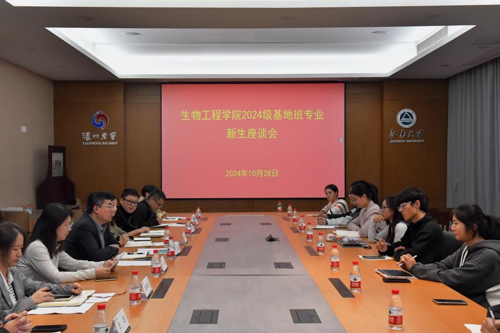 于前期充分调研学生的学习成长需求,并于10月28日在学院茅台厅召开2024级基地班新生座谈会,学院院长刘龙与基地班学生代表亲切座谈交流。学院党委副书记副院长林丹,基地班责任教授许菲,院长助理孙驰贺,基地班班主任吕成、龙凌凤,本科教学秘书胡惟佳,辅导员王珏出席本次座谈会。