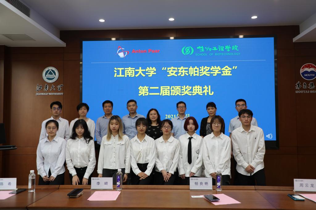 随后,李崎教授宣读2020年“安东帕奖学金”获奖名单,梁永奇、陈希、畅良艳分别为三等奖、二等奖、一等奖获得者颁发了证书并合影留念。颁奖环节结束后,获奖研究生代表官钰、本科生代表孙丹妮分别发表获奖感言,二位同学向大家介绍了自己入学以来在学习、科研、竞赛等方面的成绩,同时表达对安东帕公司的感谢,并表示未来道路上将不忘初心,继续前进。