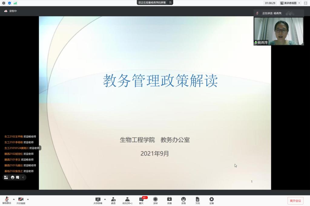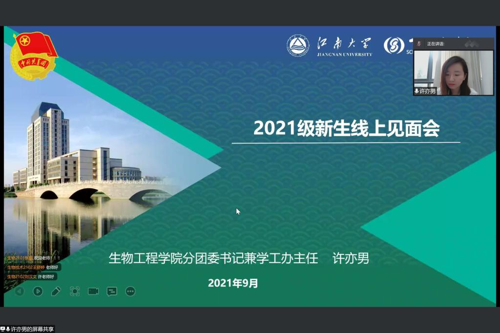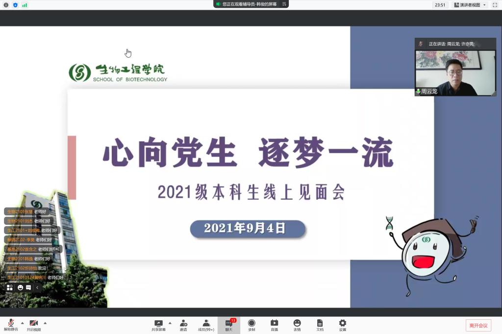 党委副书记周云龙、分团委书记许亦男、教务办本科生教务秘书杨燕萍以及260余名新生与家长共聚云端。见面会由2021级本科生辅导员韩俊主持。