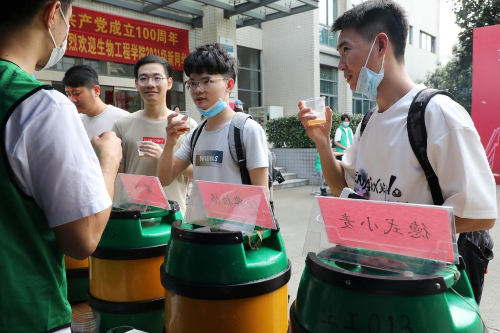 清晨,志愿者们摆好桌椅,搭起帐篷,为新同学的到来做好充分准备。学院一楼摆放着生动活泼的展架,处处洋溢着热烈的迎新氛围。“请党放心,强国有我”,这是新时代青年发出的铿锵誓言。在集中展现建党100周年庆祝活动的主题展板前,前来学院报到的新同学们再次深切地感受到生工人的家国情怀。报到处还立起了校园防骗指南展板,提醒同学们注意人身财产安全。迎新现场,学院为新同学们在文化互动区准备了丰富的活动。其中,学科特色文化活动以不同口味的精酿啤酒和专业讲解向新生提供了学科文化初体验,向新生传递着“善于实践,勇于创新”的发酵精神。在知识竞赛活动中,以党史和院情为主要内容的线上答题吸引了不少同学积极参与。通过答题互动,让新生对党史知识和学院历史有了更进一步的了解。与此同时,学院在宿舍园区站点安排志愿者值守,协助新生搬运行李,热心为新生指路带路,让新生感受到温暖。