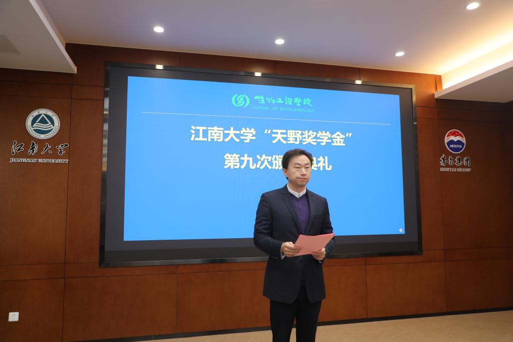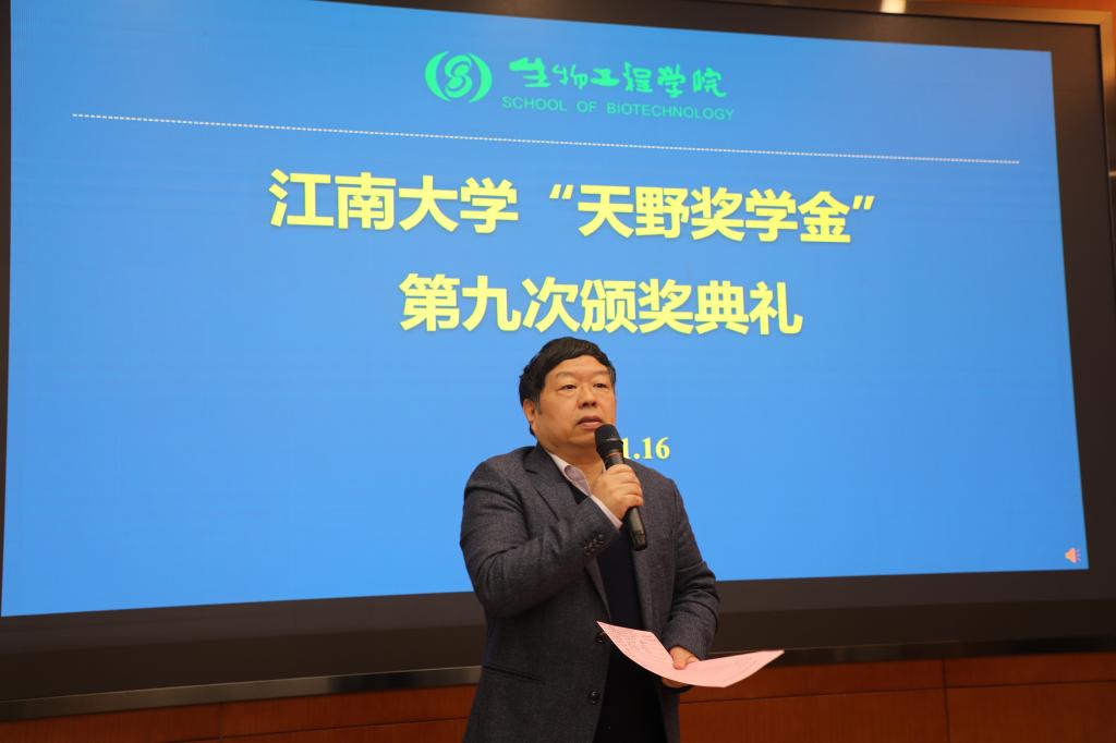 的紧密合作关系,回忆了共同举办过的多次中日酶技术论坛。他还介绍了天野奖学金的设奖宗旨,对获奖同学表示祝贺,勉励学子们再接再厉,常怀感恩之心,回报社会。