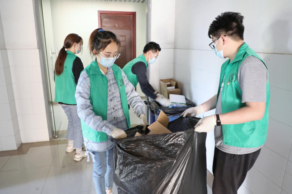 环境维护组的志愿者临时担起保洁员的角色,因校园封闭管理,严控人员进出,保洁等部分后勤保障出现暂时的空缺,两个雷锋特称团支部主动请缨,自觉承包维护学院公共环境卫生的任务。志愿者们戴好装备,规整楼道垃圾入袋,清扫学院大厅等公共区域,提醒同学注意卫生,自觉共同维护良好环境。志愿者们认为,只要有需要,只要是我青年力所能及,哪里都是“青春练兵场”。