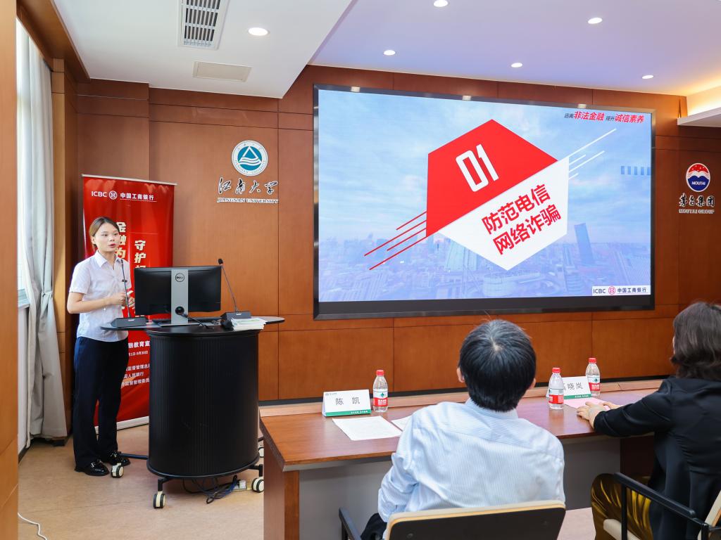 工商银行的宣讲员对在场新生进行金融知识宣讲,宣讲内容包括防范电信网络诈骗、识别和防范网贷、数字人民币、安全用卡知识、征信法律法规知识以及存款保险知识等多方面内容。宣讲员以生动的语言和贴近生活的案例,深入浅出地向学生们讲解了金融诈骗的常见手段和防范技巧,使学生们对金融安全有了更直观的认识。