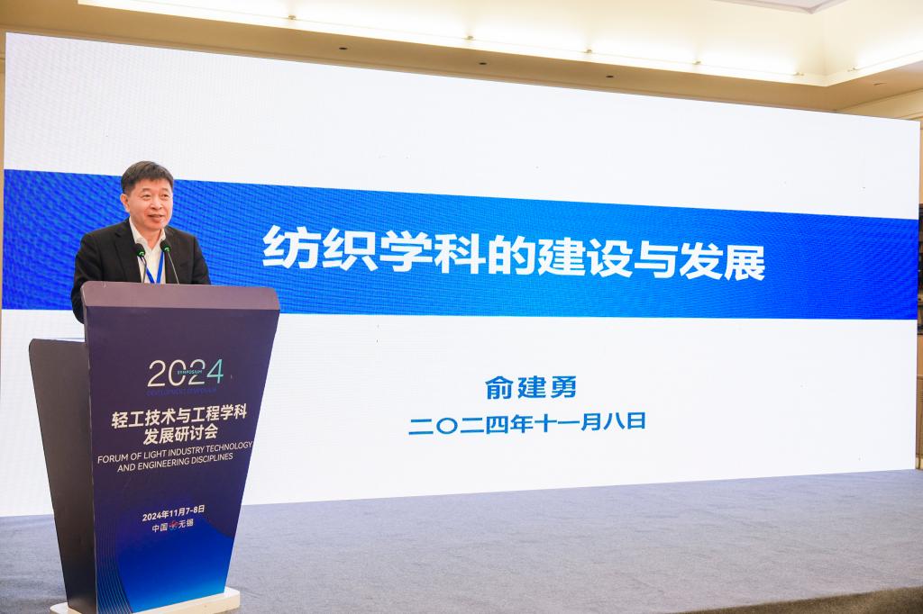 俞建勇院士以《纺织学科的建设与发展》为题进行特邀主旨报告。他介绍了我国纺织学科的发展背景、内涵方向和人才培养举措,并从纺织科技创新国际动态和我国纺织产业科技创新现状出发,介绍了我国纺织学科高质量发展的关键方向。俞院士的报告为轻工技术与工程学科的体系完善、人才培养、师资队伍建设和科技创新能力提升提供了启发和借鉴。