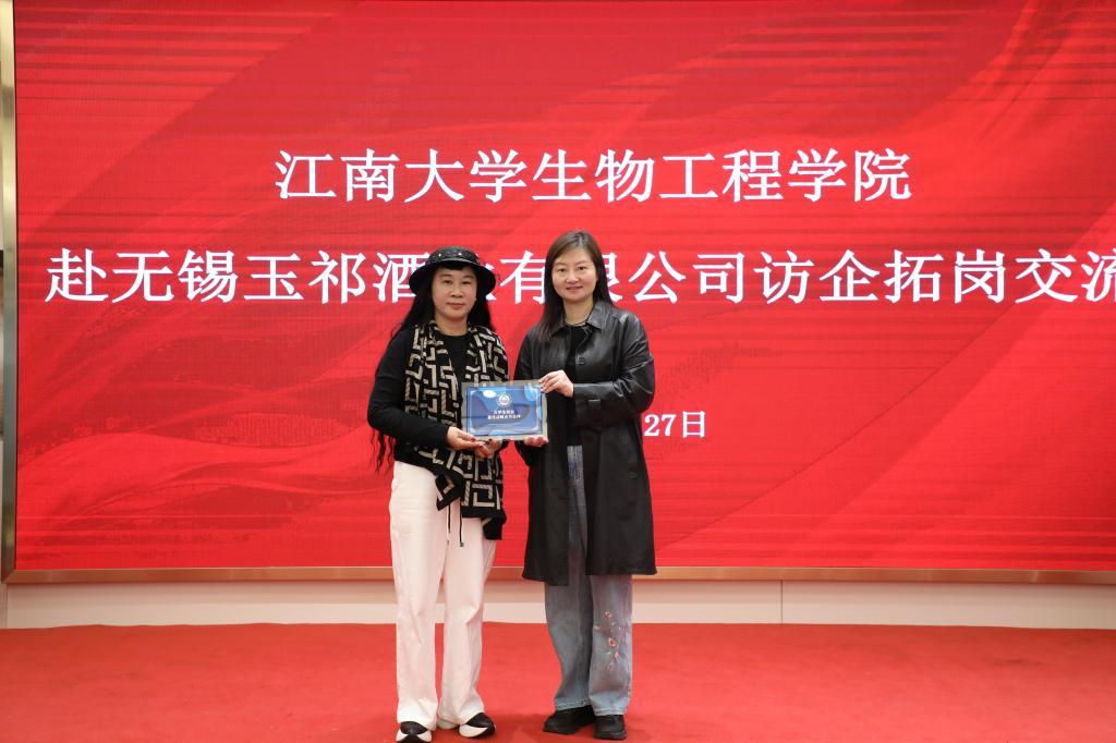 理事单位,校企双方渊源深厚。本次访企拓岗交流活动,旨在推进求职学生与玉祁酒业的“双向奔赴”。公司包装车间主任张捍东、生产经理高翔、质量部长刘翠,仓库主任沈伟燕一同参加了座谈,并与同学们关心的玉祁酒工艺特点、行业发展情况、公司员工发展路径等进行了深入交流。会后,林丹还向顾春燕授牌“大学生就业最佳战略合作伙伴”。