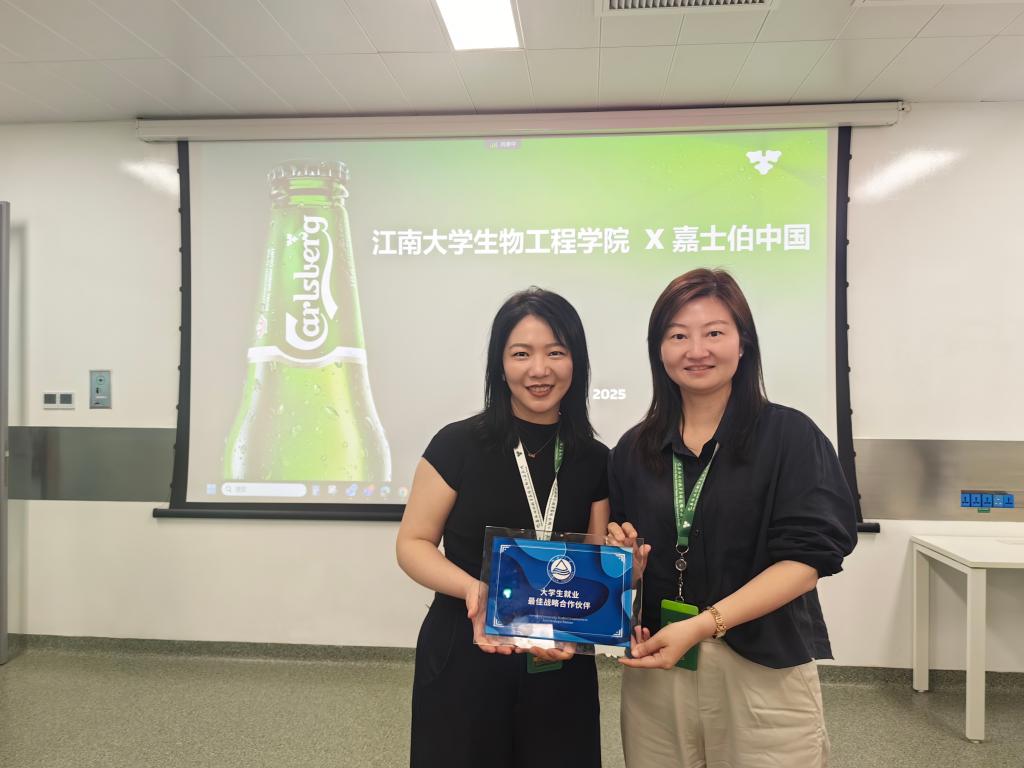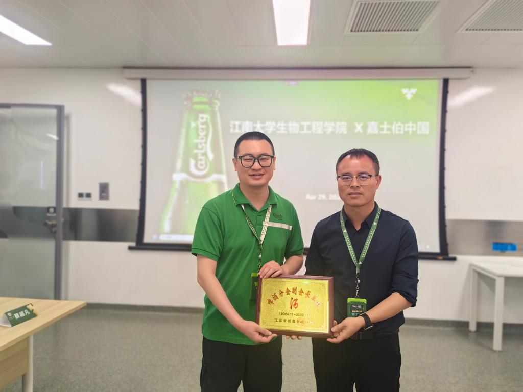 会上,林丹代表学院向嘉士伯中国授牌“大学生就业最佳战略合作伙伴”,郑飞云代表江苏省酒类行业协会向嘉士伯天目湖啤酒(江苏)有限公司授牌“啤酒分会副会长单位”。