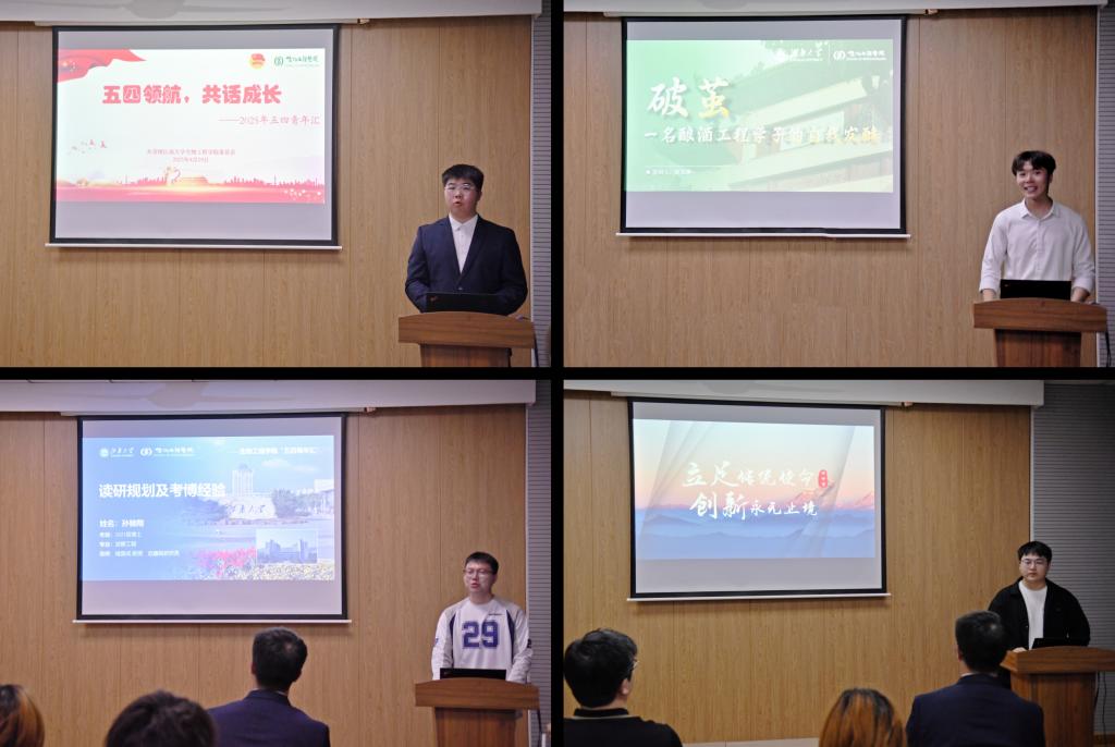 思享·用真诚讲述青春。4月29日,学院开展“五四领航共话成长”五四青年汇活动,邀请高年级优秀学生代表做主题分享。博士研究生孙驰翔讲述了自身的读研规划和考博经验,以自身学习科研、社会实践等方面的成长经历,引导同学们做向上向善的新时代青年。博士研究生班世博分享了自身服务产业发展、促进乡村振兴的感悟,传递把论文写在祖国大地上的信念。本科生赵东琳强调了善于规划、勤学奋进、勇敢乐观的重要性,鼓励同学们做有更高学术追求的青年人。