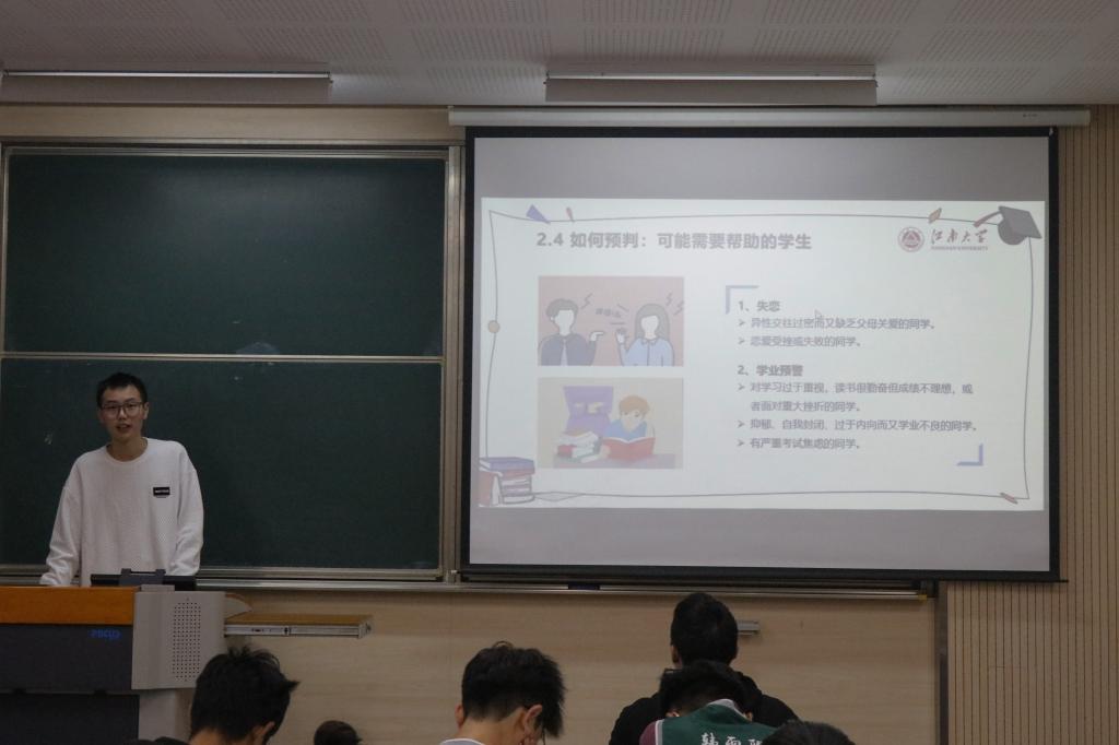 王珏基于工作实际角度,结合新生心理特点,系统阐述了班团干部的岗位要求、基本素养、工作原则以及工作内容,同时重点指出,班团干部要发挥好一线观察作用,成为同学们心理健康的守望者。