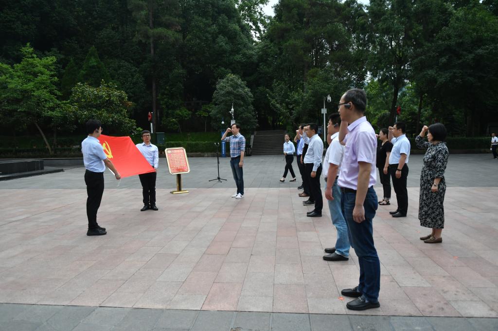 遵义会议是党的历史上一个生死攸关的转折点,这次会议,确立了以毛泽东同志为主要代表的马克思主义正确路线在党中央的领导地位,事实上开启了马克思主义中国化的新征程。在遵义会议会址内,一张旧的作战指挥图,把我们的思绪带到了那个战火纷飞、烽火交加的年代,中心组成员沿着中国红军的革命足迹,穿行于红色记忆之间,从战略转移开始长征,到遵义会议伟大转折,再到转战贵州出奇制胜,用历史史实印证了遵义会议在百年党史进程中的重要地位。在遵义红军烈士陵园纪念碑前,全体党员向革命烈士敬献花圈,鞠躬致敬,并在党委书记王维的带领下,重温了入党誓词。