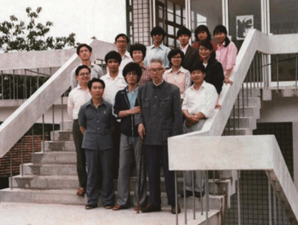 檀耀辉(右一)、朱宝镛(左一)、王鸿祺(左二)等发酵学科资深教授与发酵系主任伦世仪讨论学科发展,1984
