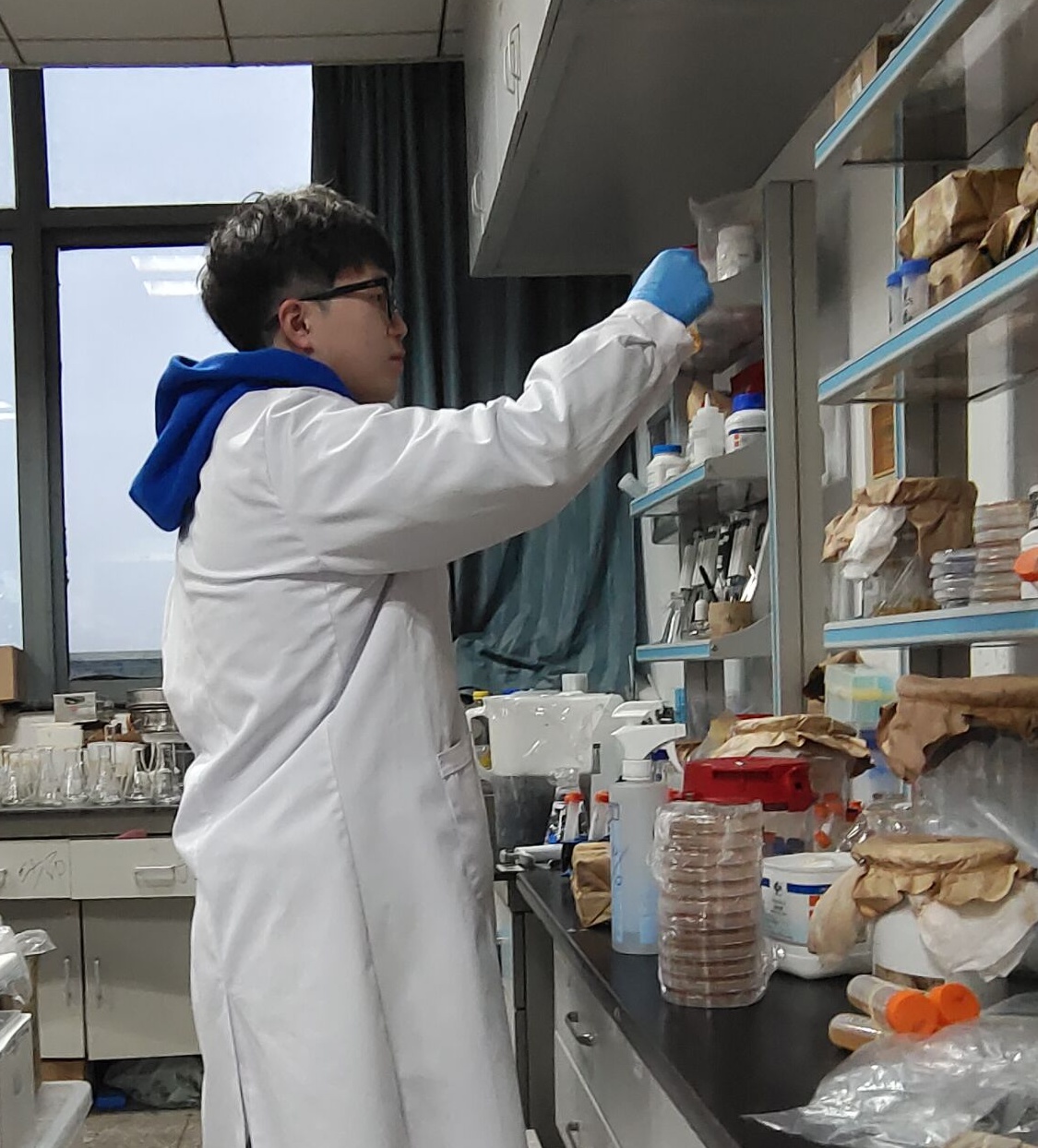 图为楼晨在做实验。
