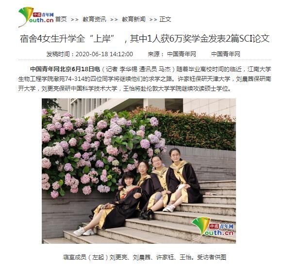 和英国格拉斯哥大学录取;有的寝室彼此激励、相互扶持,朝着不同的方向一起努力,宿舍四名男生中,两人将继续在本校读研,两人拿到15个国外大学录用通知;有的宿舍学术氛围浓厚,宿舍同学三年获得6万奖学金,并发表2篇SCI论文,寝室四人将分别前往天津大学,南开大学,伦敦大学学院和中国科学技术大学继续深造。