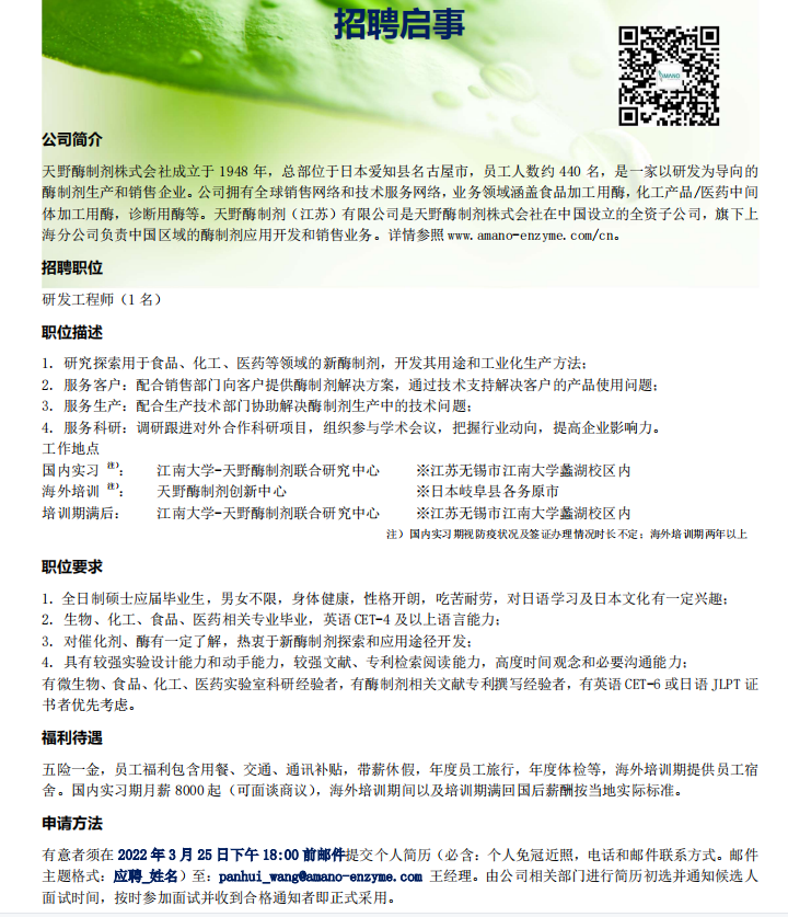 上一篇:生工学院【2022】143号 上海瑞帝安生物科技有限公司校园招聘
