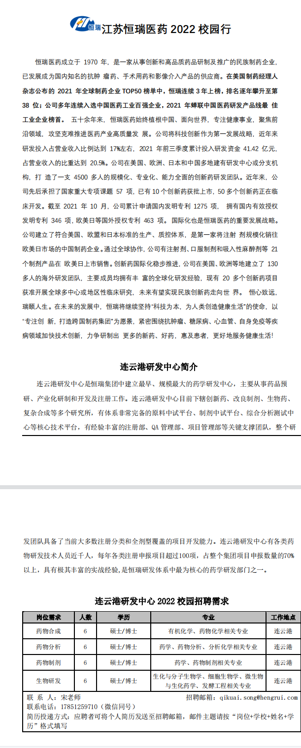 下一篇:生工学院【2022】156号 上海锐康生物技术研发有限公司校园招聘