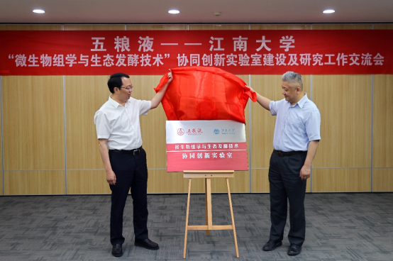 与五粮液的合作历程,并对近期合作在窖泥微生物主体功能菌、五粮酿造机理等方面取得的一系列研究成果进行了汇报。最后,曾从钦和徐岩为五粮液-快看漫画