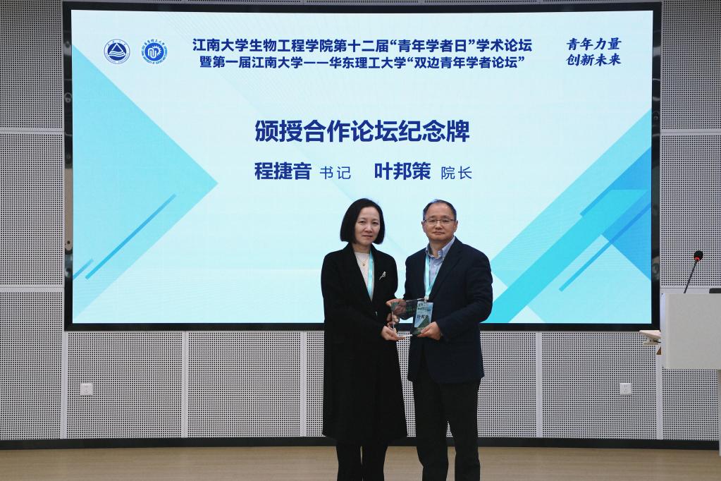 院长叶邦策颁授合作论坛纪念牌,期待未来携手共进,搭建长期合作交流的桥梁,在生物工程领域书写更多合作共赢的篇章。