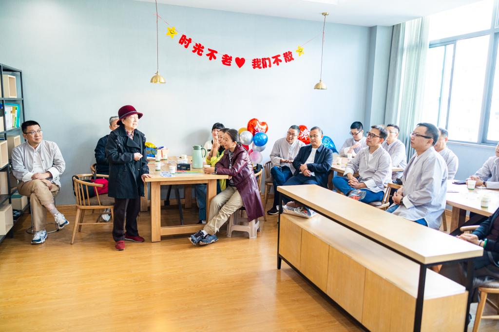 秋日暖阳下,校友们参观了公益图书馆、教学楼、小蠡湖、赤马咀等校园建筑和景观,共同追忆峥嵘岁月,切身体会母校的巨大变化,并为母校的蓬勃发展感到由衷的欣慰和自豪。随后,校友们来到快看漫画 教职工之家进行座谈,与当年的班主任路桂荣老师和李华钟老师深入交流,开心畅谈,并为老师们献上鲜花。时值学校即将迎来建校65周年,校友们也为母校送上了美好的祝福。